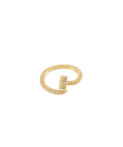 Introducing the Crystal Nail Ring, a stunning accessory made with gorgeous gold. Elevate any outfit with this elegant and versatile piece. Its durable yet delicate design adds a touch of sophistication to any look. Perfect for any occasion, this ring will make you shine like never before.