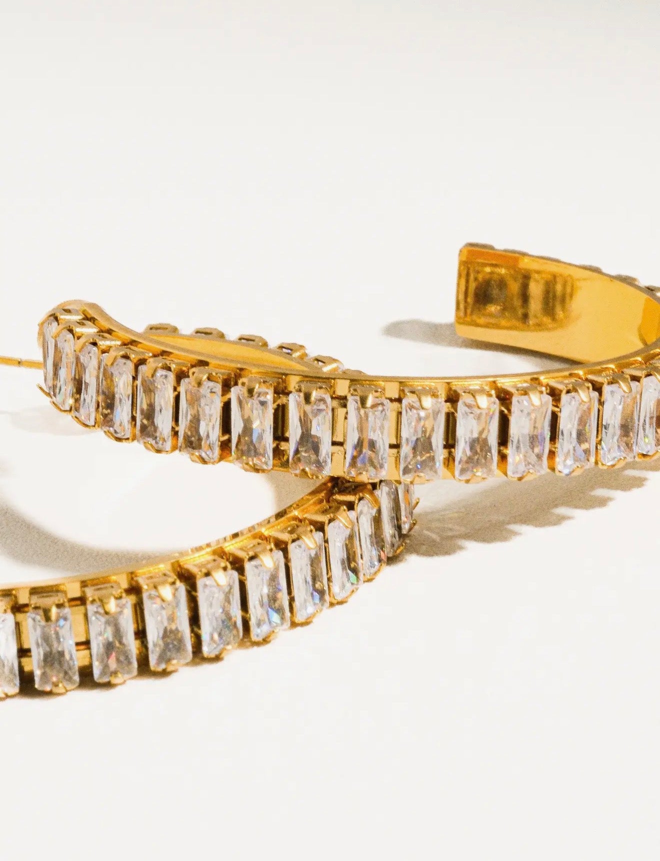 Elevate your style with Glamora Hoops, exquisite 18k gold earrings adorned with stunning rhinestones. These statement pieces are hypoallergenic, water-resistant, and non-tarnishing, ensuring they shine as brightly as you do! Wear them with confidence and let your personality sparkle!