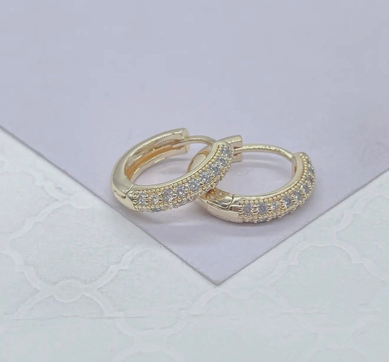 Upgrade your jewelry collection with our Hallie Huggie Earrings. Made with 18k gold-filled material and featuring micro cubic zirconia stones, these huggies offer a timeless and sophisticated look with a touch of sparkle. Elevate your style and feel confident in these delicate yet stunning earrings.