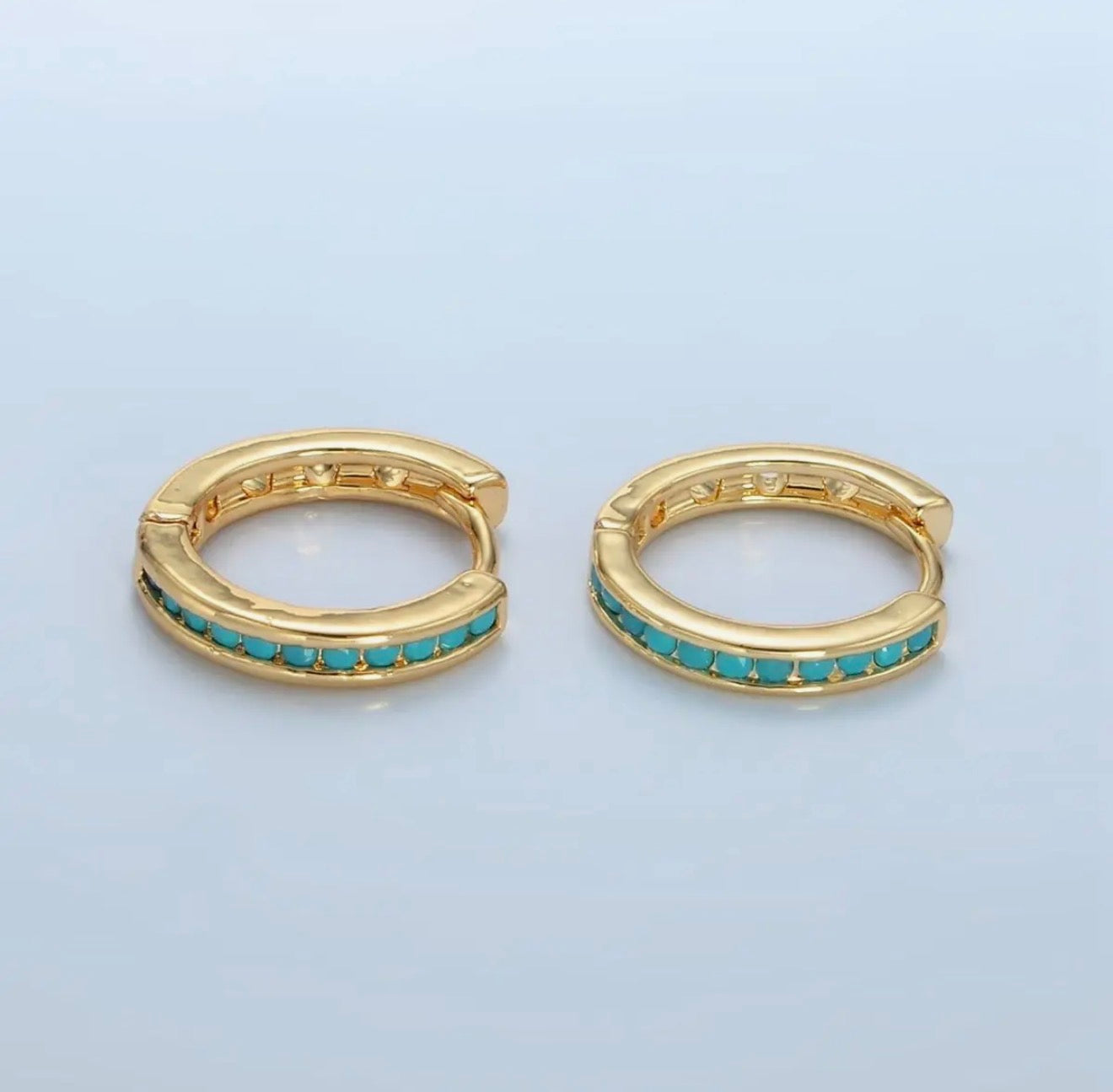 Elevate your everyday style with the Landry Hoops, exquisite 24k gold filled huggie earrings adorned with stunning turquoise micro pavé stones. These earrings effortlessly blend elegance with casual sophistication, making them a must-have accessory that inspires confidence and radiance in every moment! Experience the beauty and charm today!