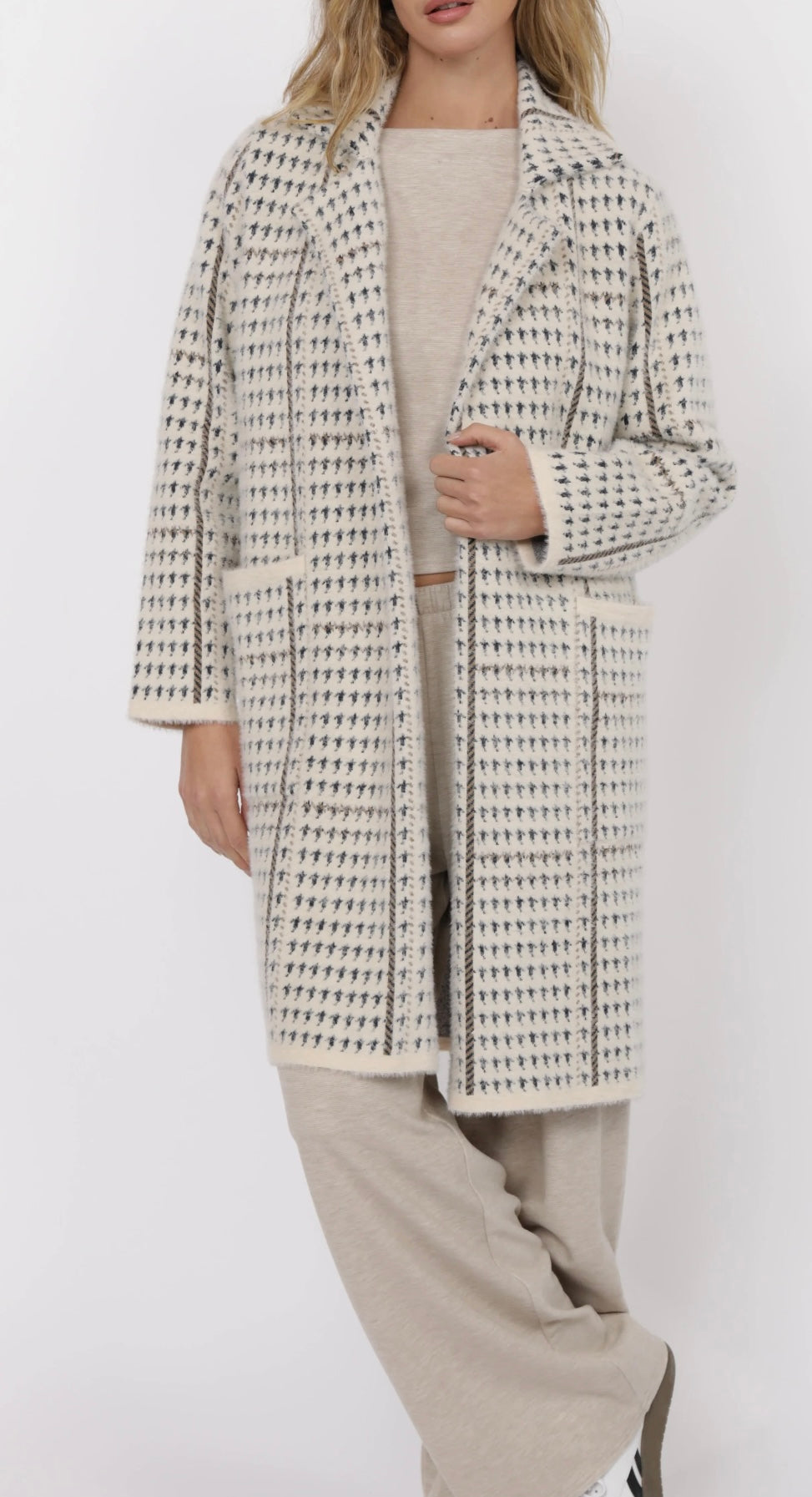 Stay stylish and cozy all season long with our Marceau Houndstooth Coat. This long coat is the perfect addition to your fall and winter wardrobe, with a classic houndstooth pattern that never goes out of style. Stay warm and fashionable with this cute jacket.