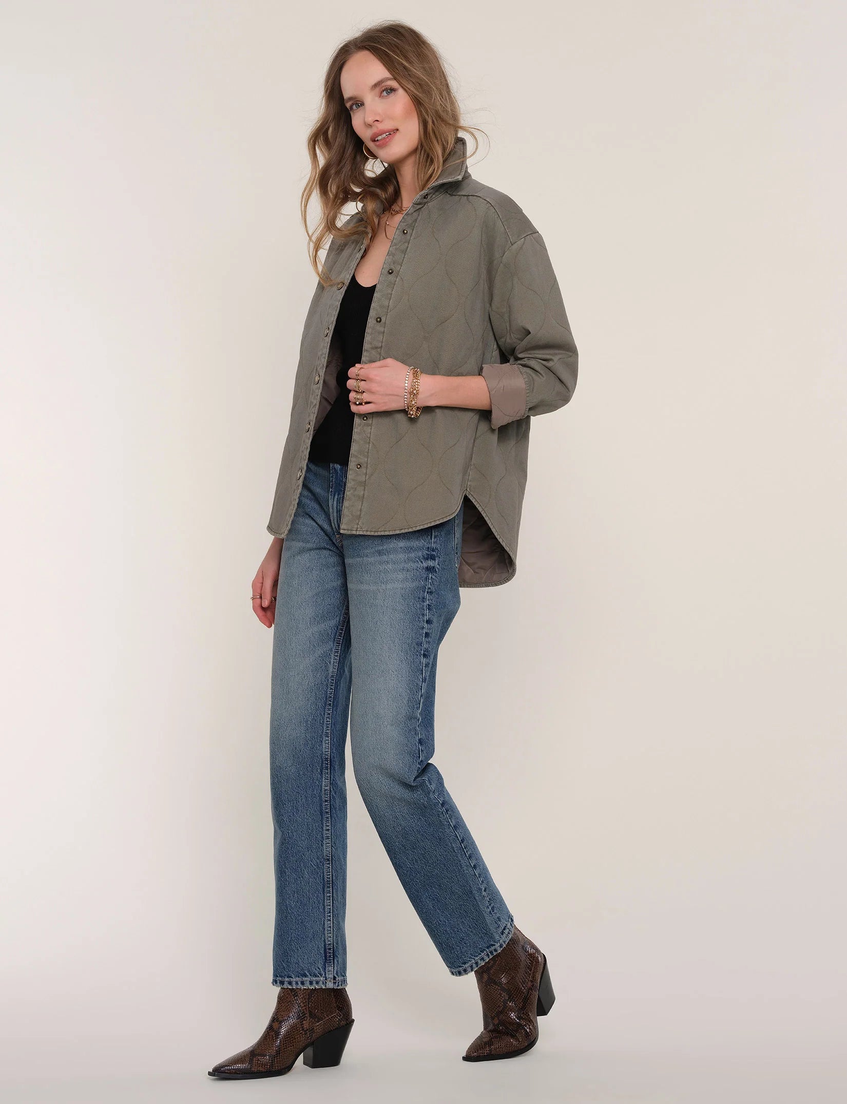 Introducing the Vye Jacket by Heartloom. With its quilted design and stylish olive color, this jacket is a must-have for the fall season. Stay cozy and on-trend with this versatile piece.